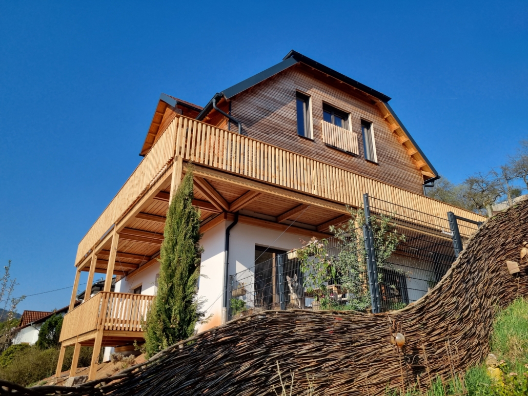 Ein Holzbalkon schafft zusätzlichen Wohnraum im Freien und wertet Ihr Haus optisch auf.
