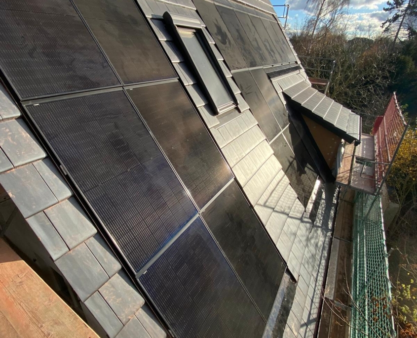 Moderne Systemlösungen ermöglichen uns, PV Anlagen individuell und nach dem jeweilig notwendigen Verbrauch direkt in neue Dacheindeckungen zu integrieren.