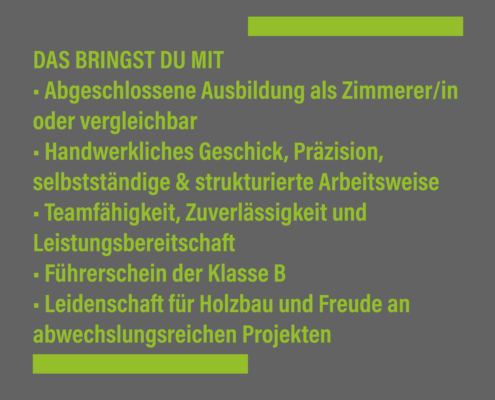 Unser Betrieb hat seit seiner Gründung bereits sechs Auszubildende erfolgreich ausgebildet und setzt damit aktiv auf die Förderung des Nachwuchses. Aktuell befindet sich ein weiterer Azubi im dritten Lehrjahr – ein Zeichen für unser Engagement und unsere Leidenschaft für das Zimmererhandwerk.
